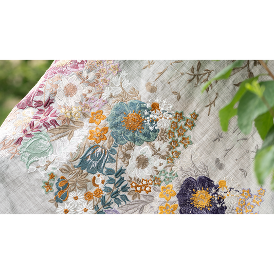 テキスタイル 花園と葉と茎 墨中×多色