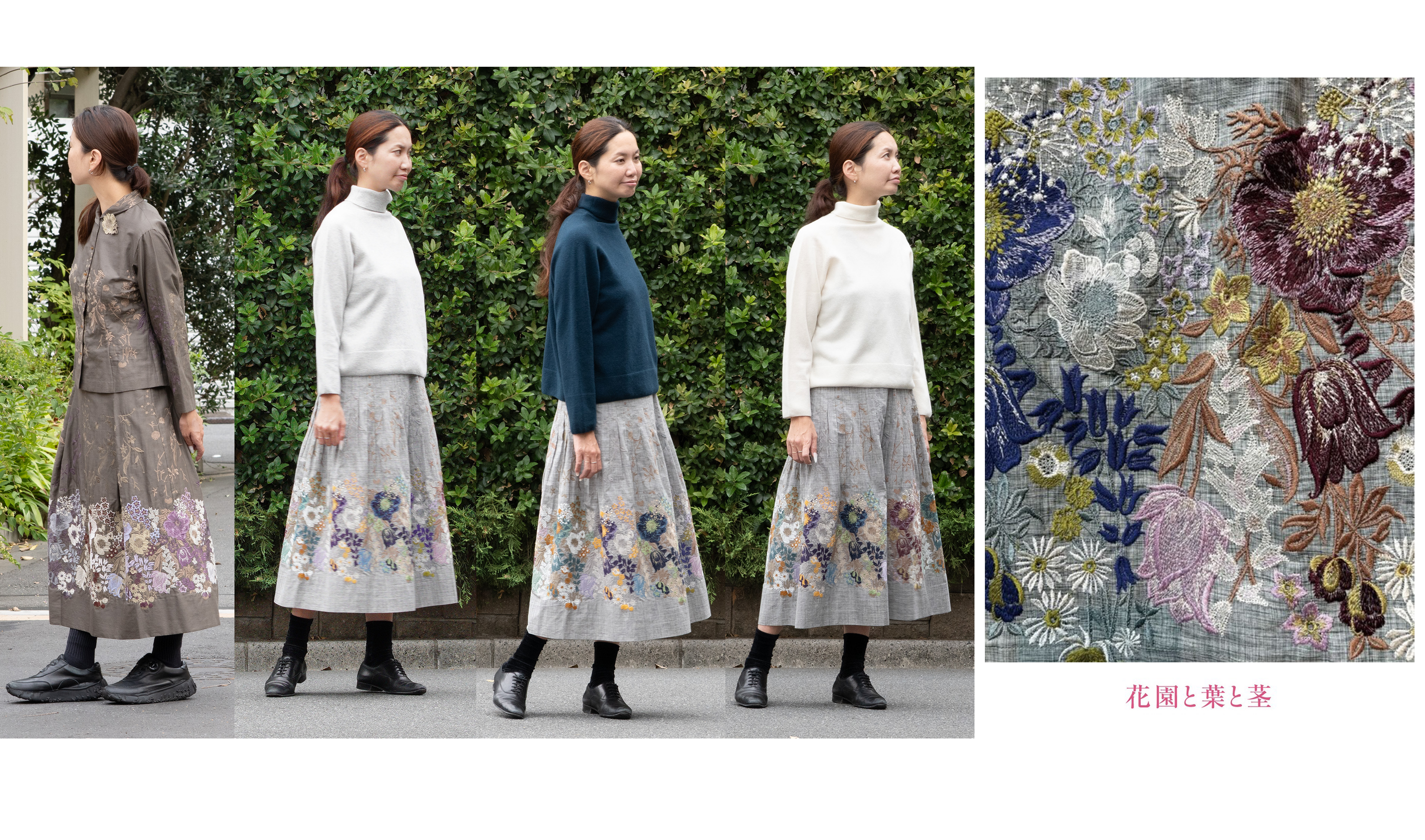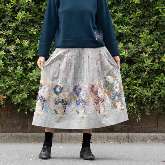 花園と葉と茎タックスカート 墨中×多色