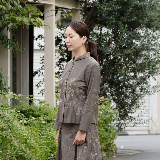 葉と茎チビ衿ブラウス ペールカーキ