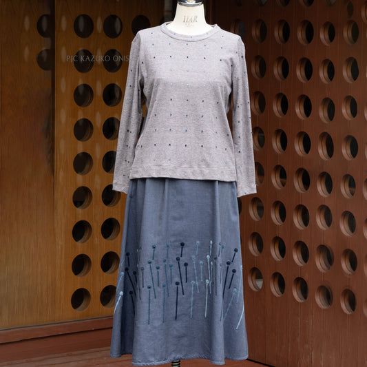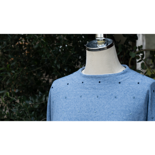 「PJC Green」コットンリヨセルデニム服と同じ配色の水玉刺しゅうを施しコーディネイトを更に楽しんでいただけるデザインを企画しました。