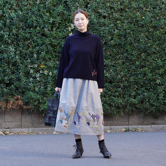 ホールガーメントタートルニット 1ポイント花園刺繍 グレー【予約販売】