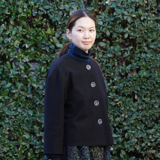 圧縮ウール天竺 植物採集ノーカラーコート ネイビー