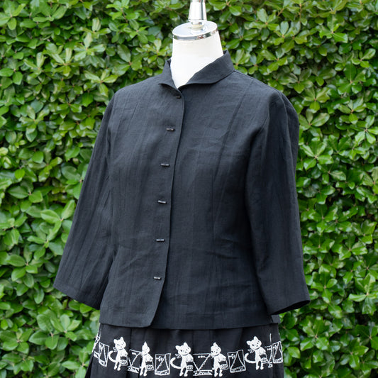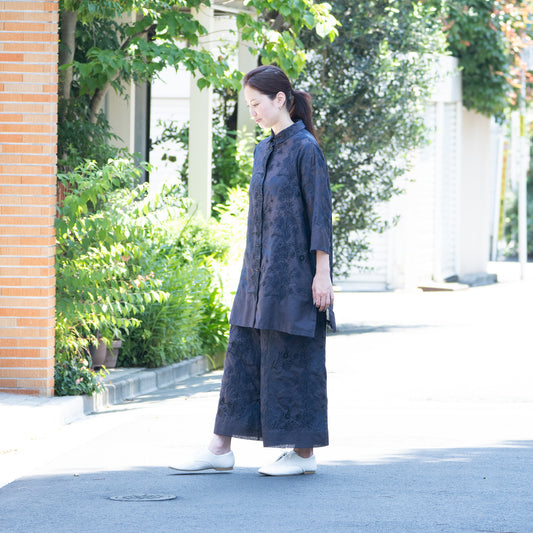 カットグラスフラワー シャツカラーロングJK ネイビーく
