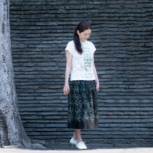 スクエア小花 チビ半袖Tシャツ 白×多色