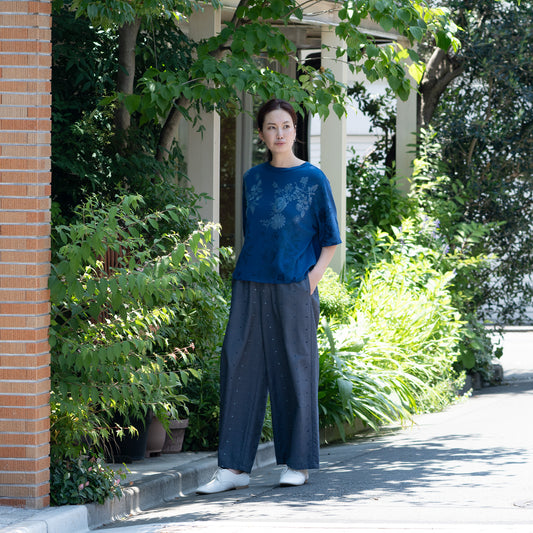 カットグラスフラワー ワイドパンツ ネイビー