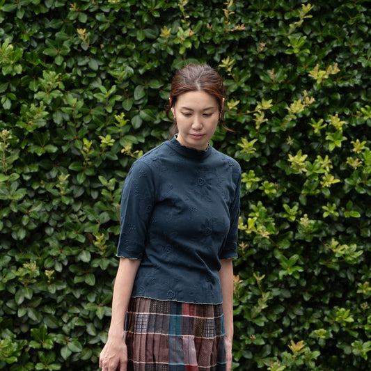 木の実バラ スタンドネック半袖Tシャツ ナイトグリーン