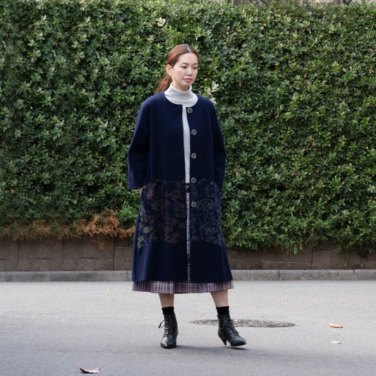 圧縮ウール天竺 植物採集ノーカラーコート ネイビー【予約販売】