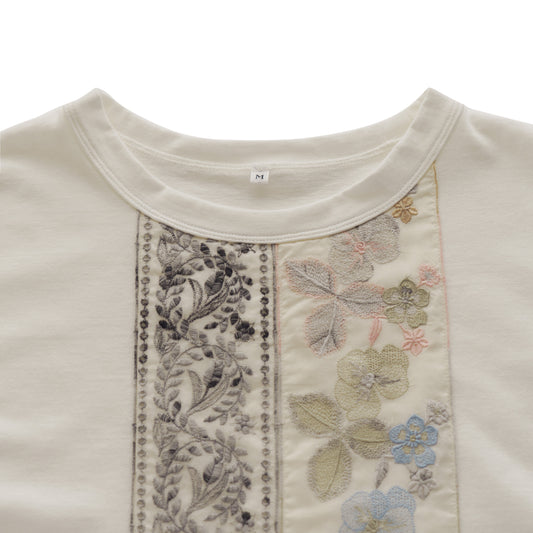 ホールガーメントタートルニット 1ポイント花園刺繍 ホワイト