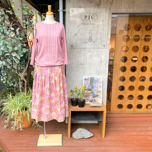 SOLD OUT大葉っぱ タックスカート 黒×グリーン系