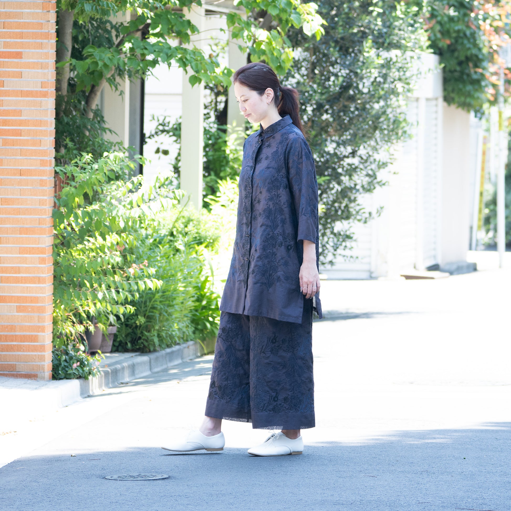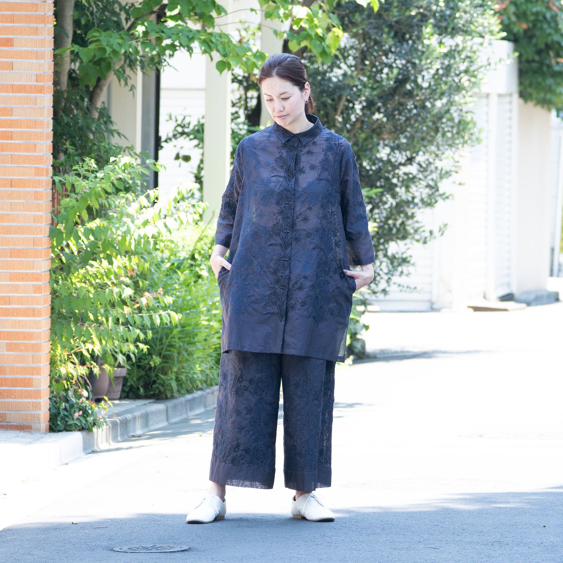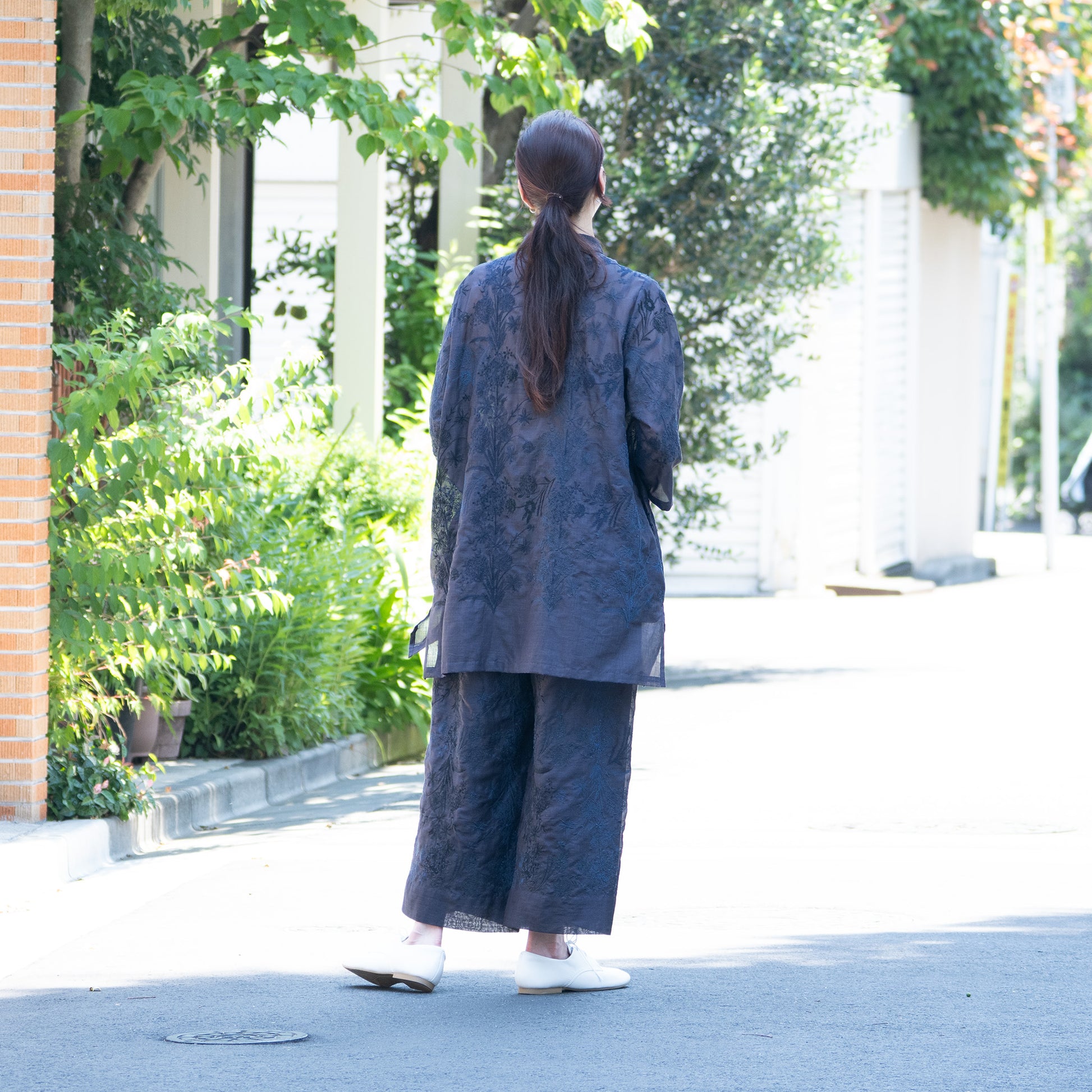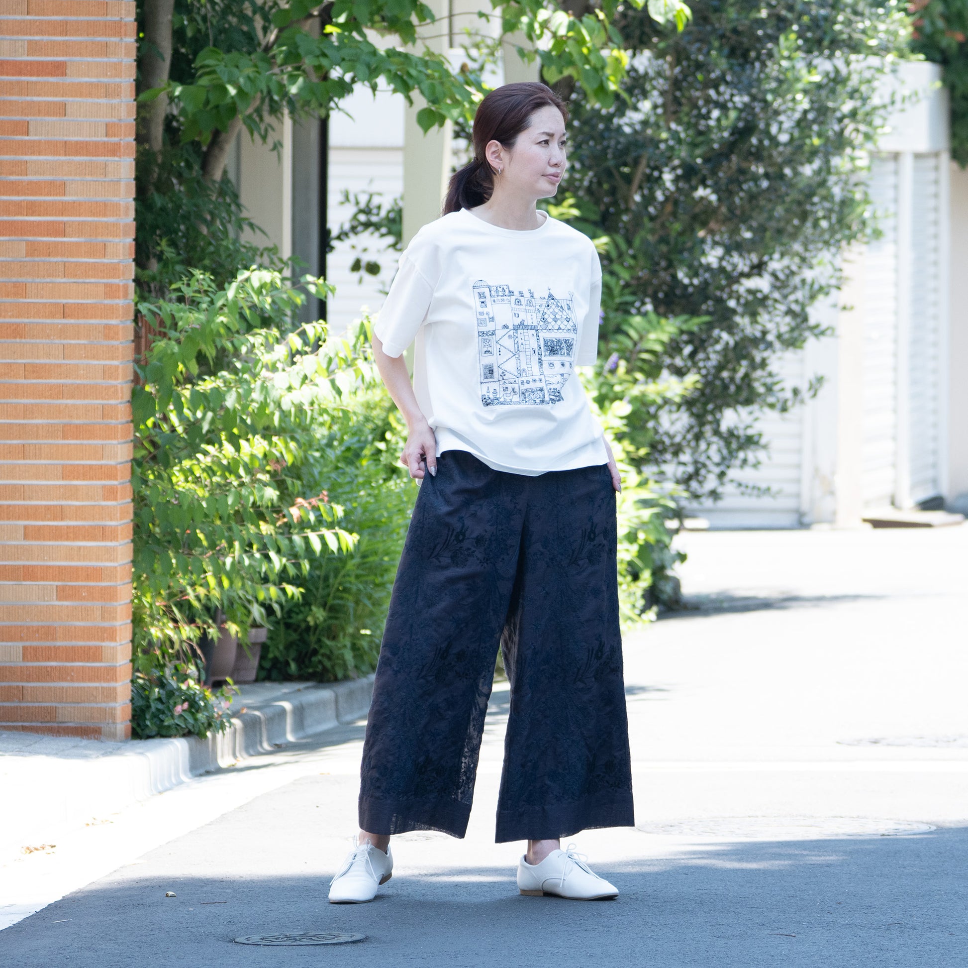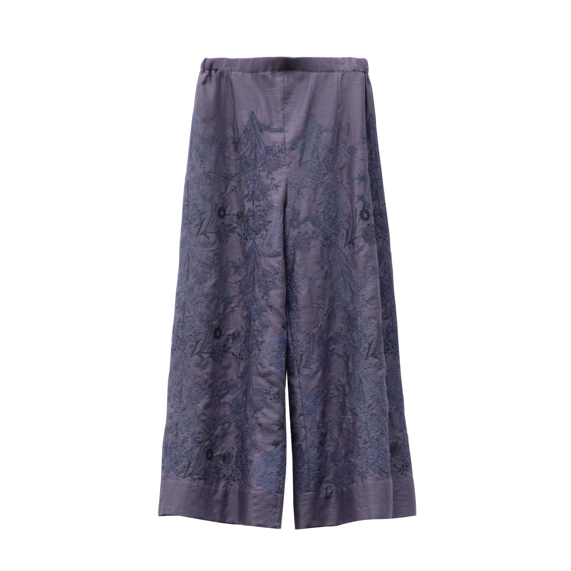 エレガントな雰囲気が漂うワイドパンツは、美しいシルエットが魅力的です。シンプルなデザインながらも刺しゅうレースが素敵なワイドパンツです。