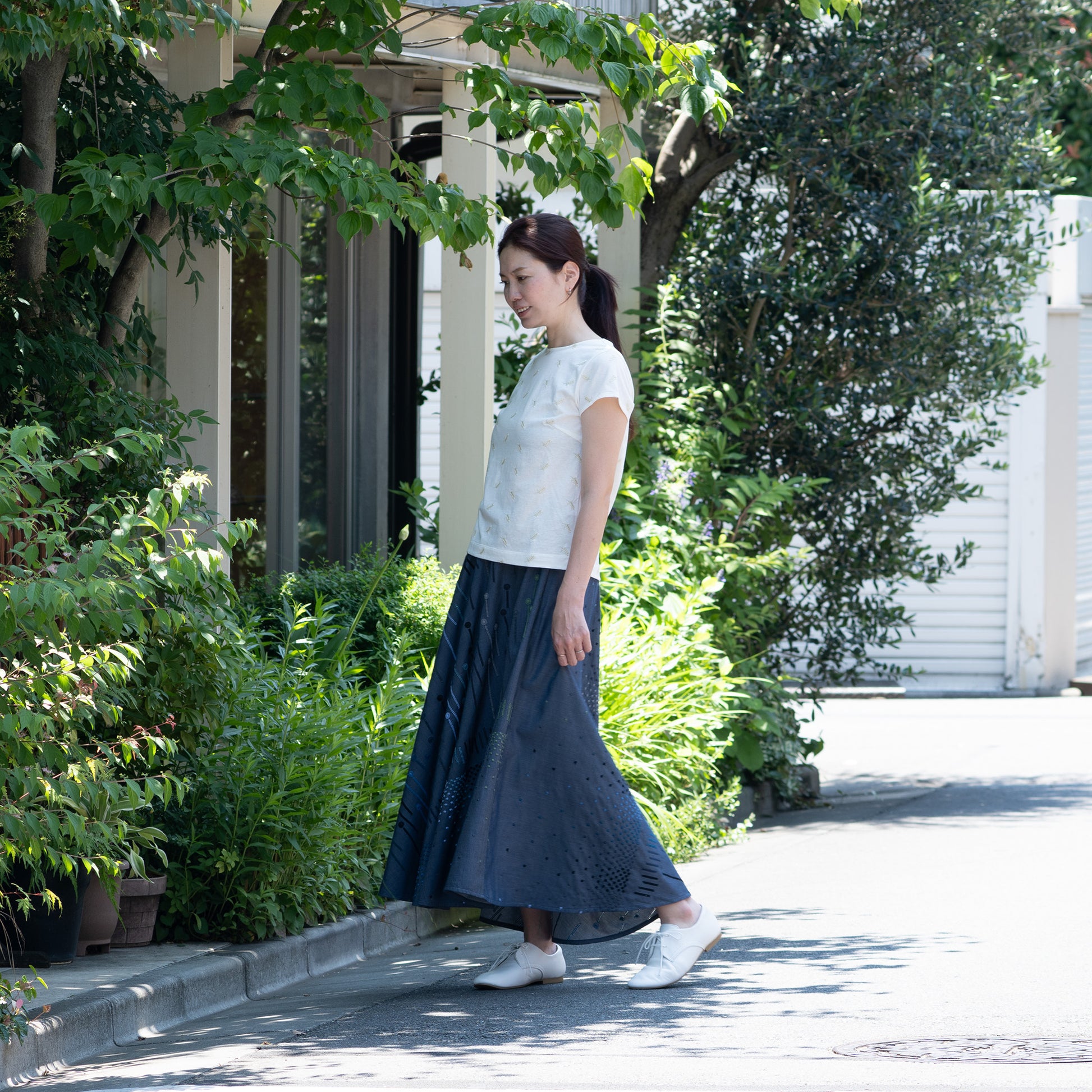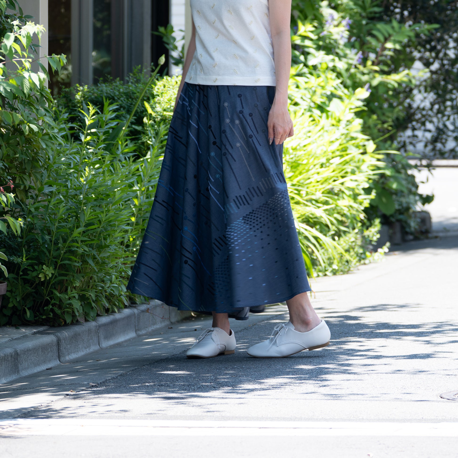 大人カジュアルでエレガントな雰囲気の華やかなサーキュラースカートです。