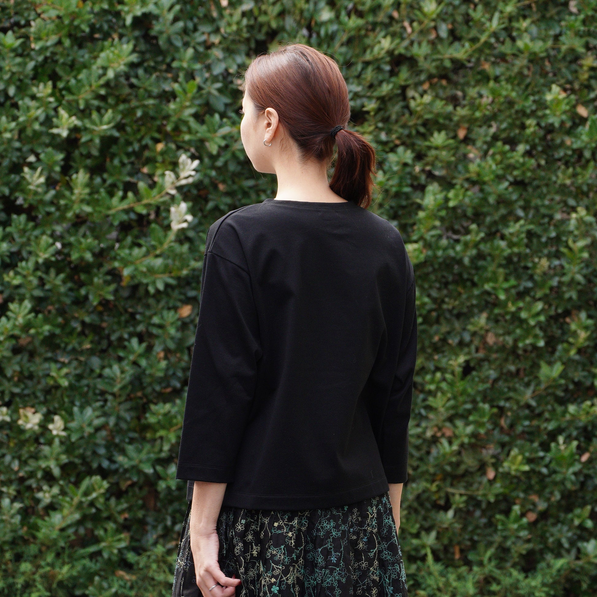 スミレと原っぱクロッチ 七分袖Tシャツ 黒×グリーン