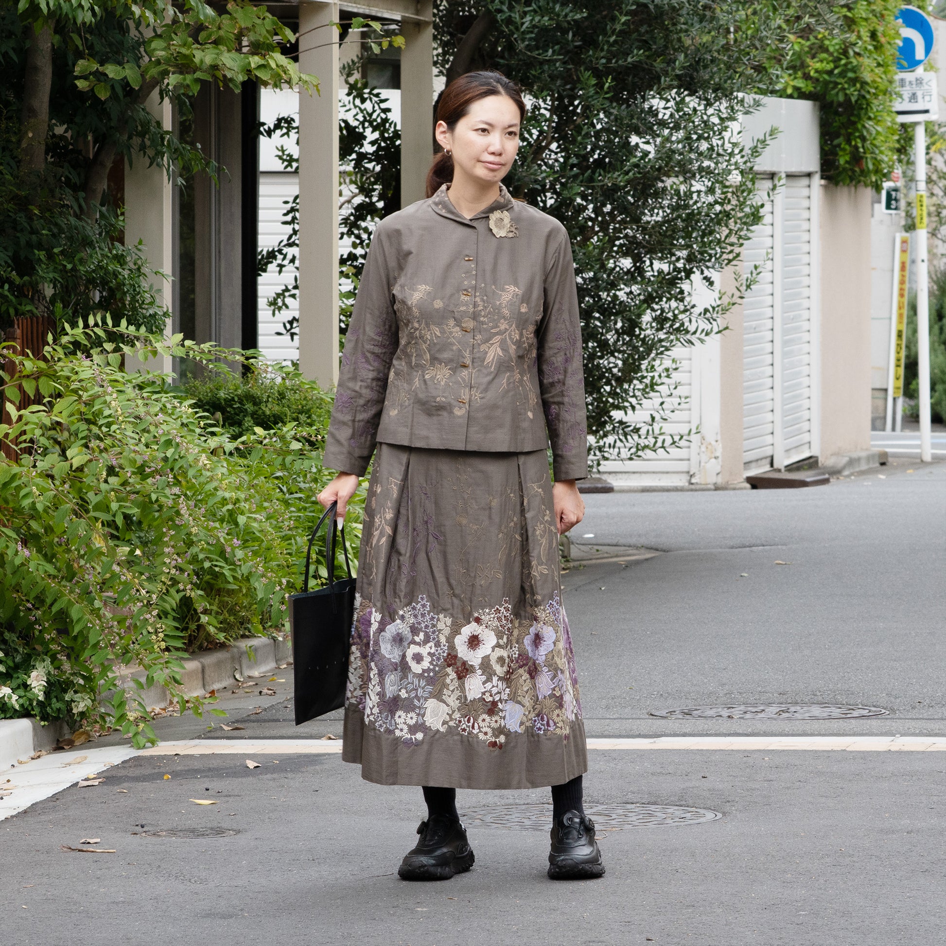 花園のスカートとのコーディネートで秋のオシャレな装いを楽しんでください。