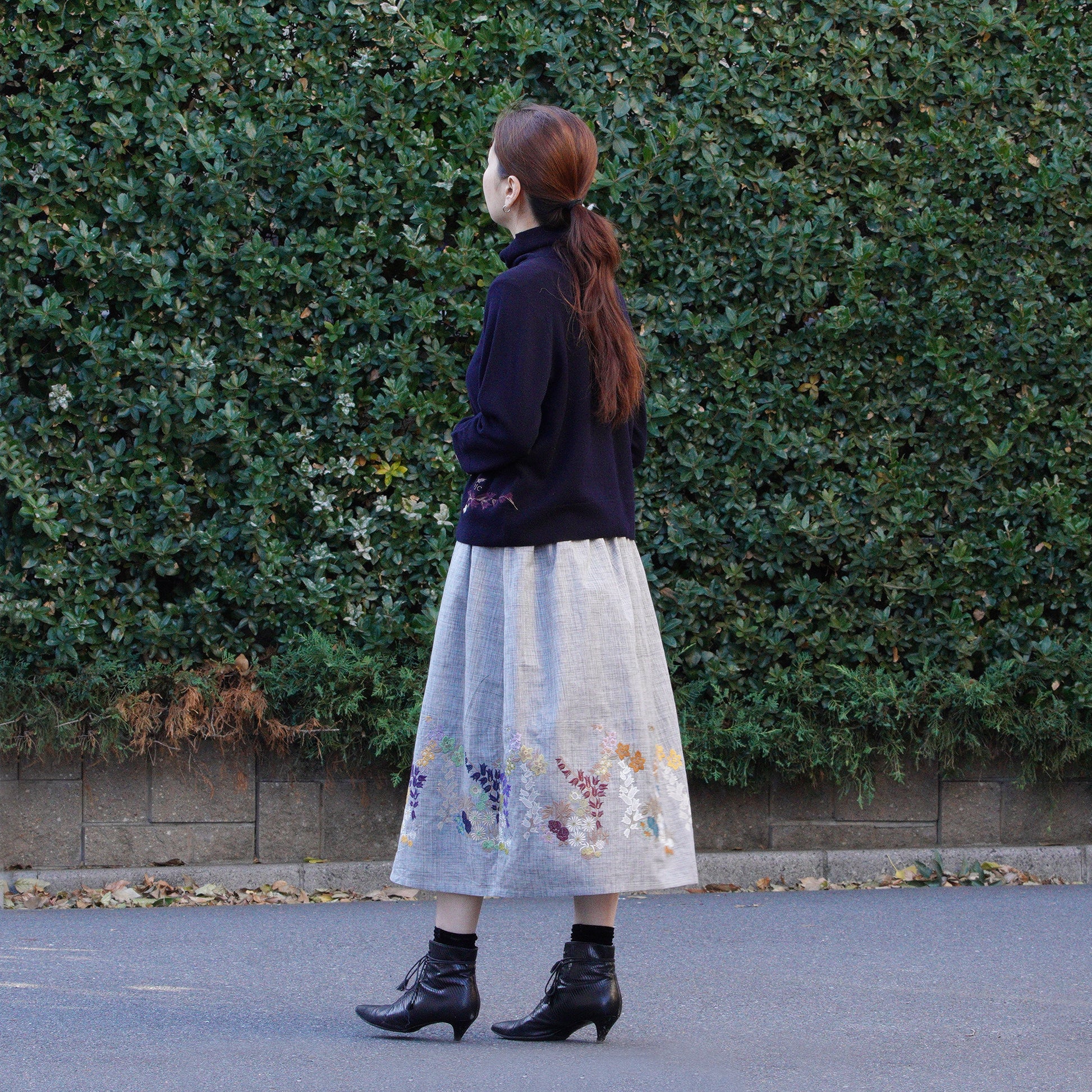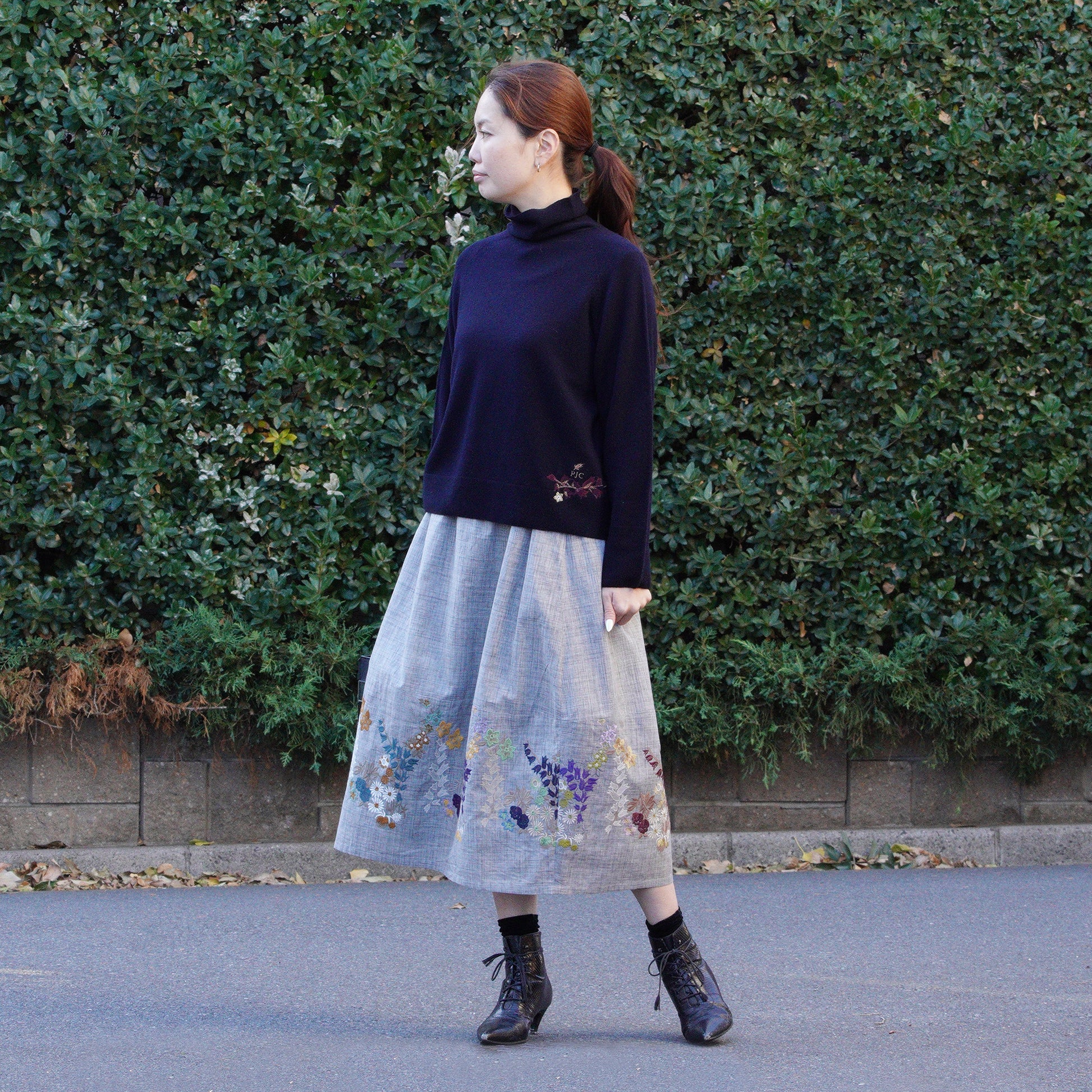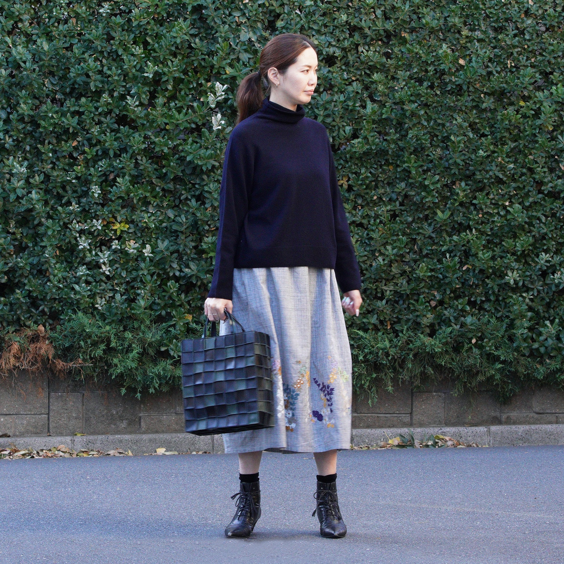 ウエストゴムで両サイドポケットあり、コクーン切り替えスカート